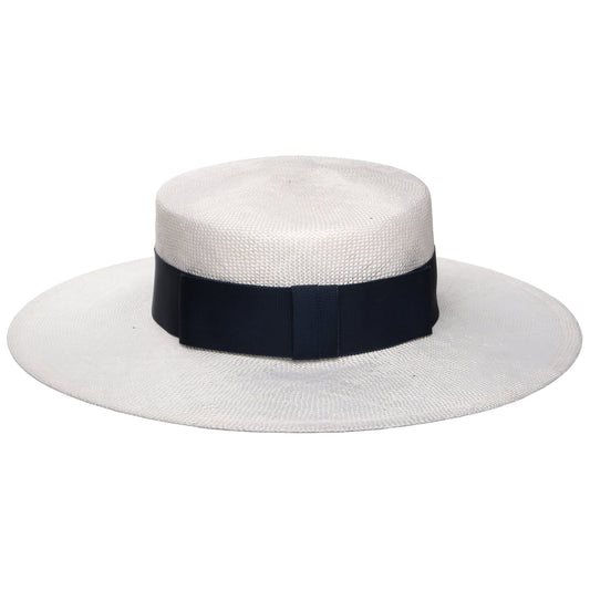 Whiteley Hats Audrey Boater Hat - White-Navy