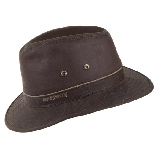 Stetson Hats Ava Water Repellent Waxed Cotton Safari Fedora Hat - Brown