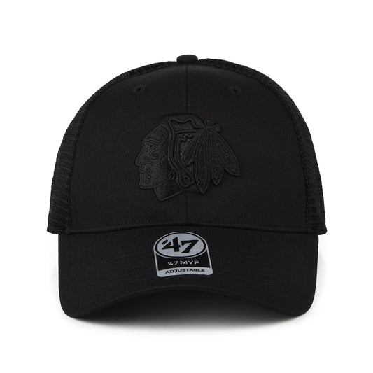 47 Brand Chicago Blackhawks Trucker Cap - NHL Branson MVP - Black On Black