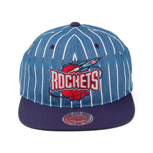 Mitchell & Ness Houston Rockets Snapback Cap - Denim Pinstripe - Navy Blue