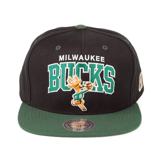 Mitchell & Ness Milwaukee Bucks Snapback Cap - NBA Arch 2 Tone - Black-Green