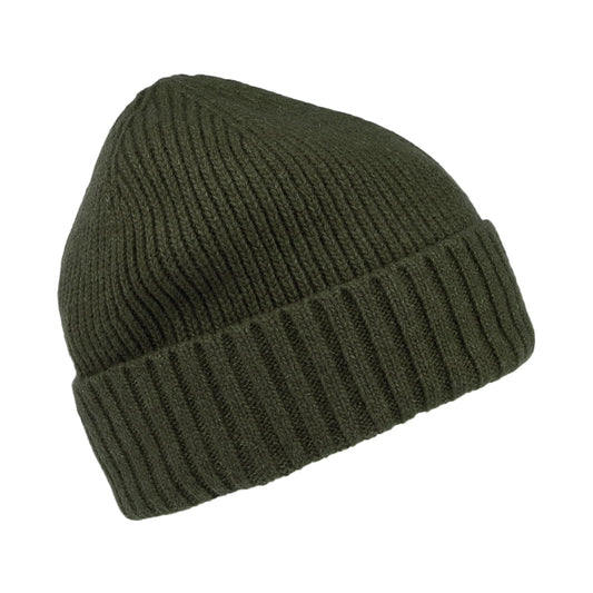 Highland 2000 Short Fishermans English Wool Beanie Hat - Olive