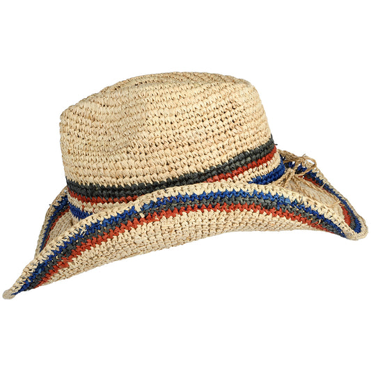 Scala Hats Trezza Crocheted Raffia Cowboy Hat - Dark Natural