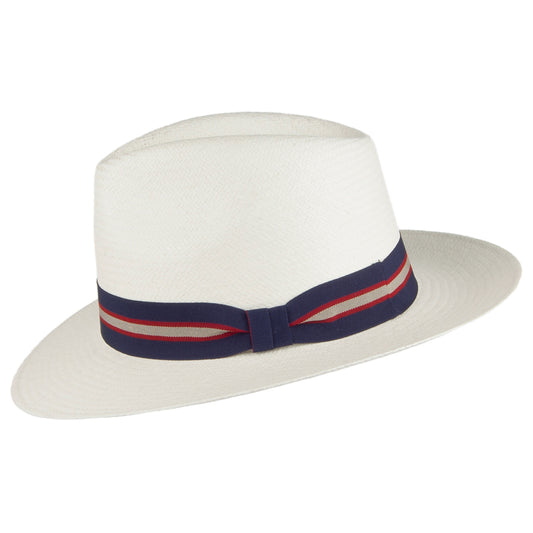 Failsworth Hats Regimental Panama Fedora Hat with Navy Band - Bleach