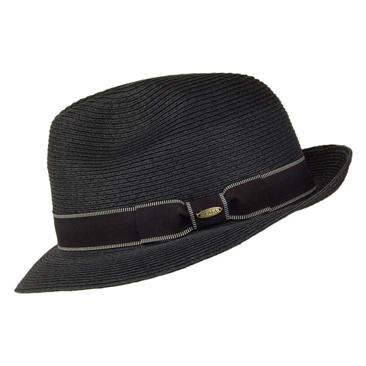 Scala Hats Wyatt Fine Braid Toyo Fedora Hat - Black