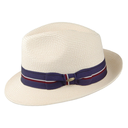 Scala Hats Drums Fine Braid Toyo Fedora Hat - Natural-Indigo