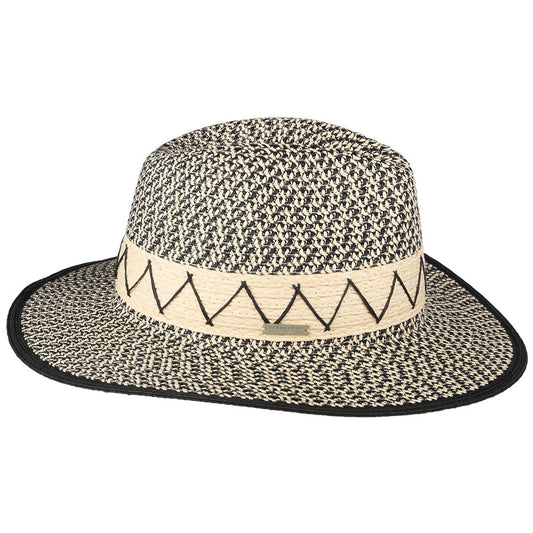Seeberger Hats Zigzag Toyo Straw Fedora Hat - Natural-Black
