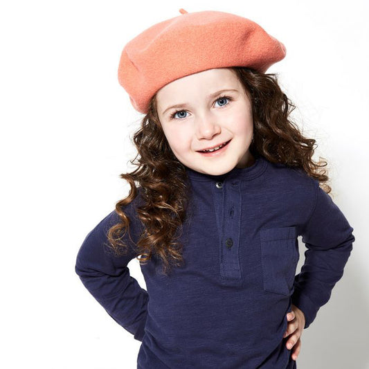 Laulhère Kids Petit Basque Merino Wool Beret - Coral