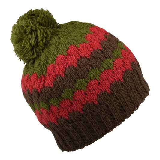 Kusan Stripe Bobble Hat - Brown-Green