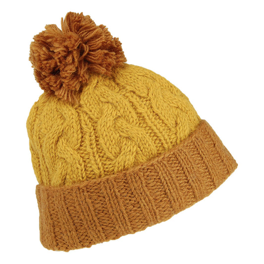 Kusan 2-Tone Cable Knit Turn Up Bobble Hat - Mustard