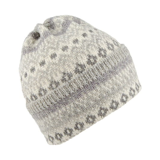 Highland 2000 Fair Isle Wool Cuffed Beanie Hat - Light Grey