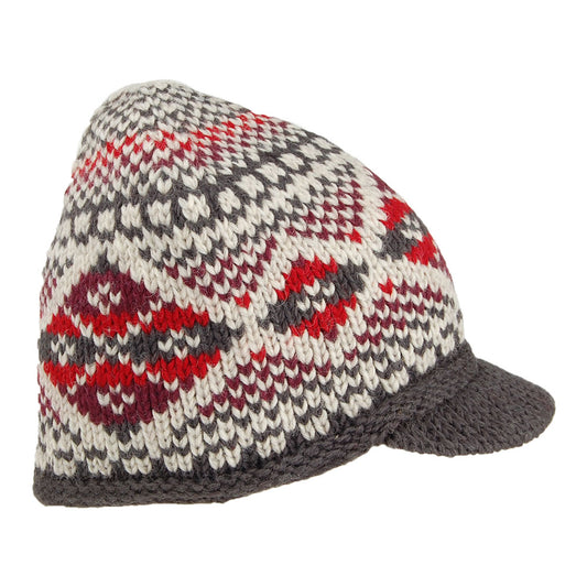 Kusan Brooklyn Fair Isle Peaked Beanie Hat - Red-Grey
