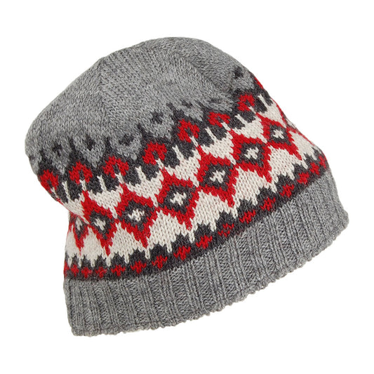 Kusan Hats Fine Gauge Fair Isle Beanie Hat - Grey-Red