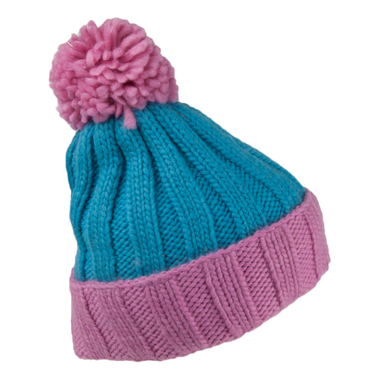 Kusan Ribbed Turn Up Bobble Hat - Pink-Blue