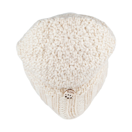 Kusan Button Down Beanie Hat - White