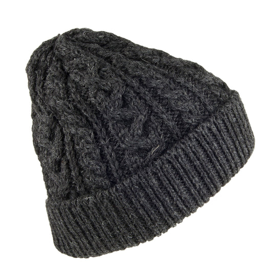 Highland 2000 Cuffed Cable Knit English Wool Beanie Hat - Charcoal