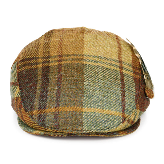 Failsworth Hats British Wool Tartan Feather Flat Cap - Mustard-Brown-Wine