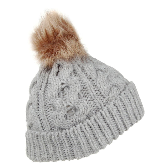 Barbour Hats Penshaw Cable Knit Faux Fur Pom Bobble Hat - Grey