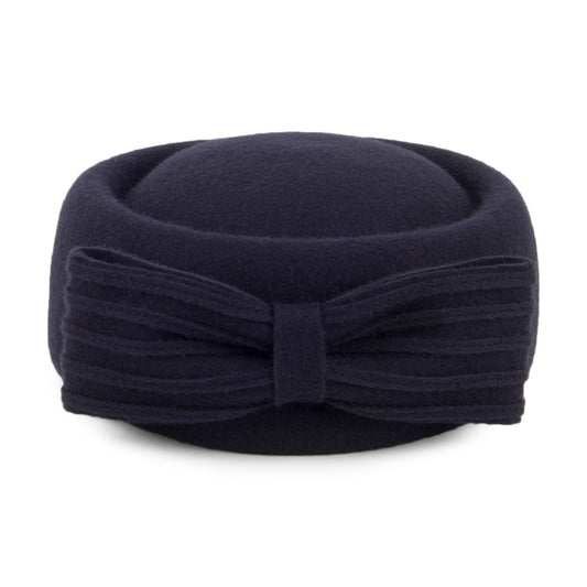 Whiteley Hats Jackie O Loop Bow Wool Pillbox Hat - Navy Blue