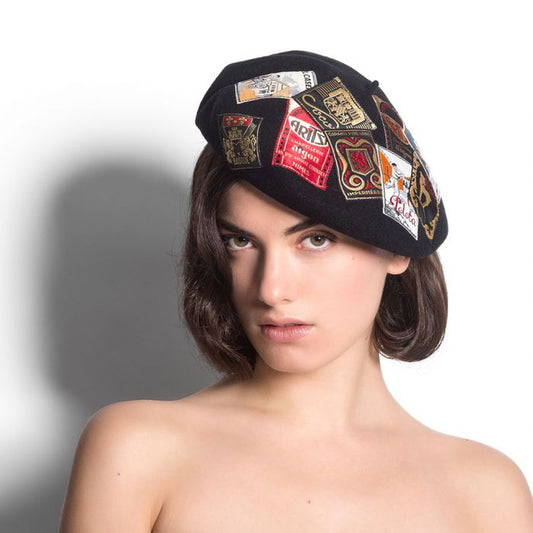 Laulhère Hats Eridan Vintage Patch Merino Wool Beret - black