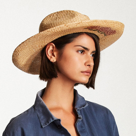 Brixton Hats Joanna Embroidered Straw Sun Hat - Natural Mix