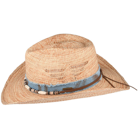 Stetson Hats Raffia Straw Teardrop Fedora Hat - Natural