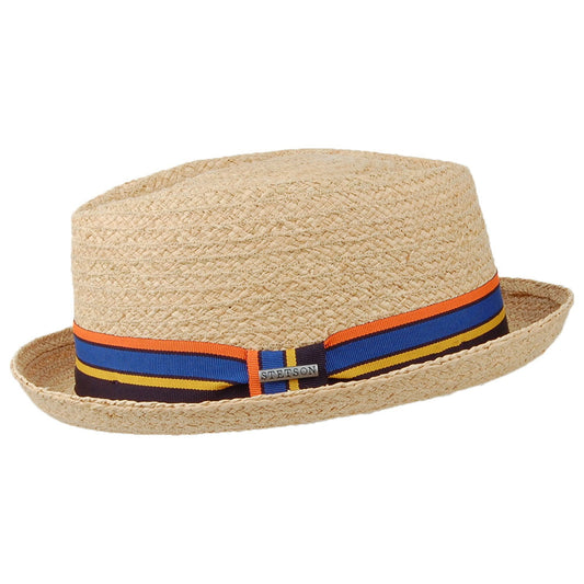 Stetson Hats Raffia Straw Diamond Crown Pork Pie Hat - Natural