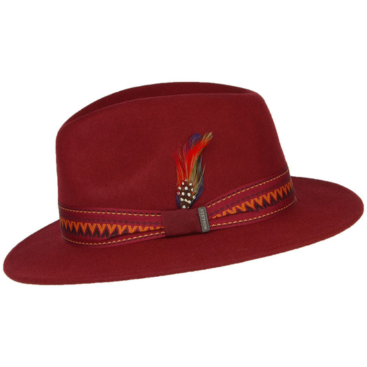 Stetson Hats Aztek Wool Felt Fedora Hat - Burgundy