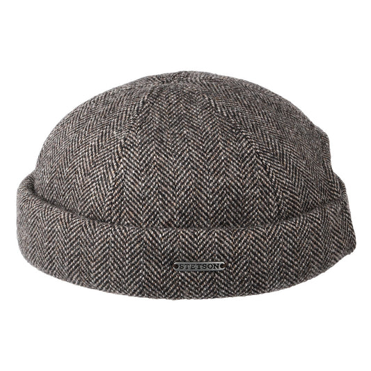 Stetson Hats Wool Herringbone Docker Beanie Hat - Grey-Black