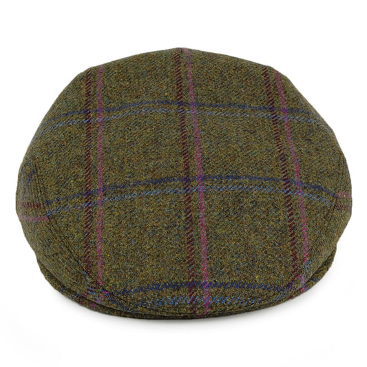 City Sport Saxony Windowpane British Wool Flat Cap - Moss