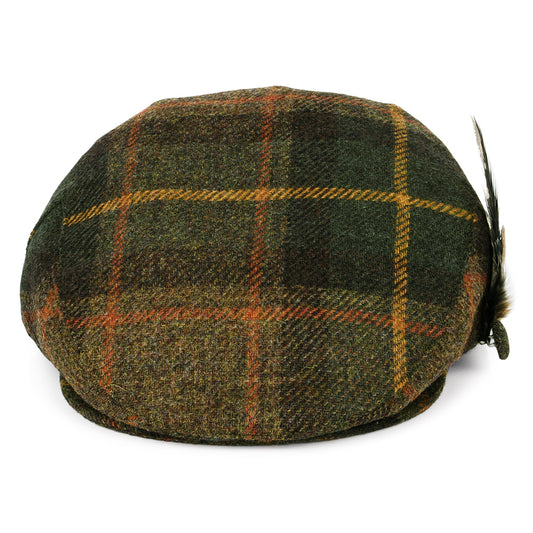 Failsworth Hats British Wool Tartan Feather Flat Cap - Green-Brown-Mustard