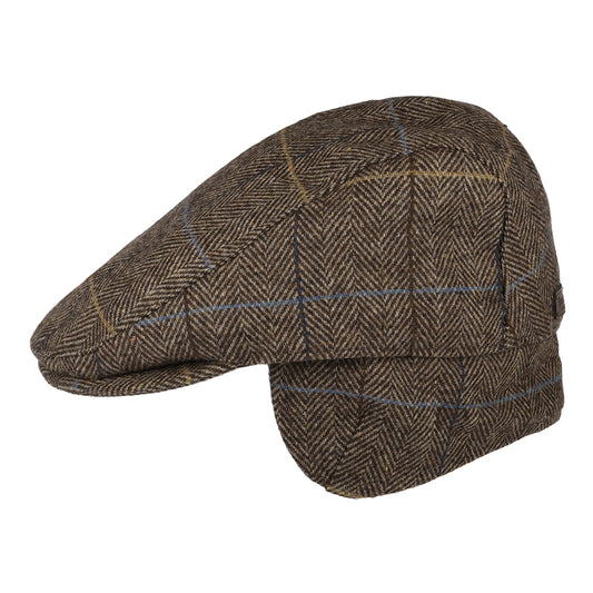 Barbour Hats Cheviot Windowpane Herringbone Flat Cap With Earflaps - Brown