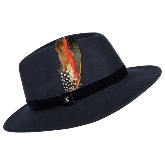 Joules Hats Wool Felt XXI Fedora Hat with Velvet Band - Navy Blue