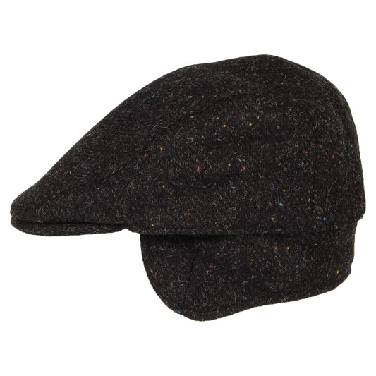 Failsworth Hats HARRIS TWEED Herringbone Oban Flat Cap with Earflaps - Charcoal
