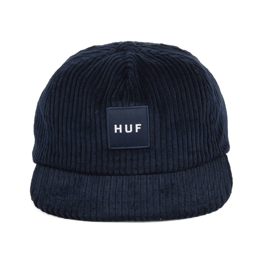 HUF Box Logo Corduroy Flat Brim Baseball Cap - Navy Blue