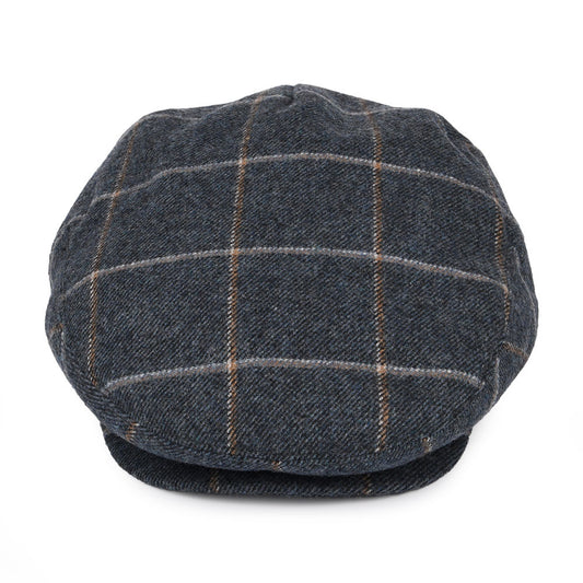 Jaxon & James Gaslamp Windowpane Plaid Flat Cap - Denim Blue