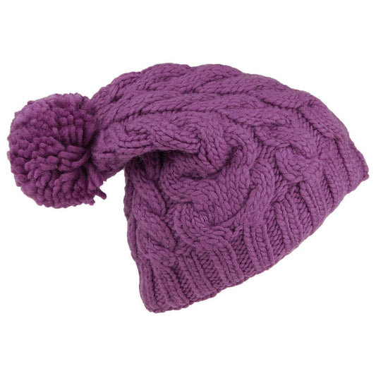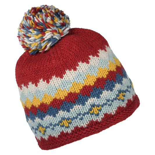 Kusan Ribbed Turn Up Bobble Hat - Burgundy-Teal
