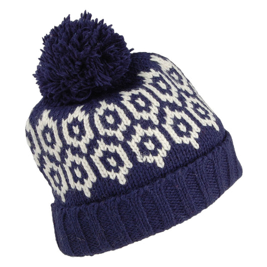 Kusan Patterned Turn Up Bobble Hat - Navy Blue