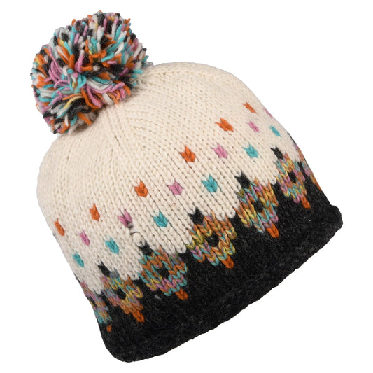 Kusan Snowy Fair Isle Bobble Hat - Cream-Charcoal