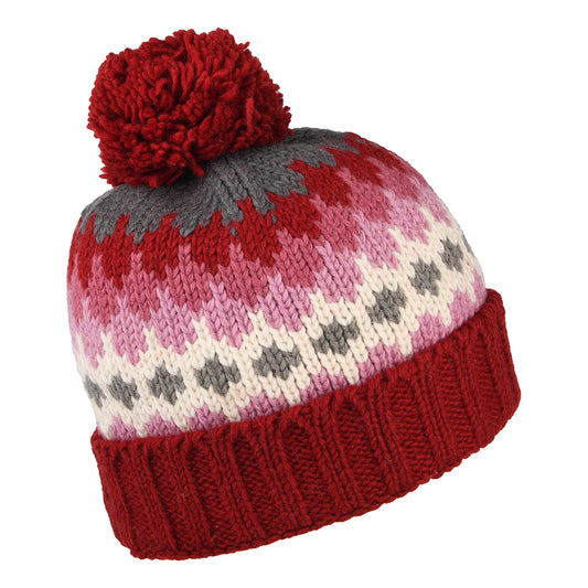 Kusan Striped Button Down Beanie Hat - Red-Plum-Grey