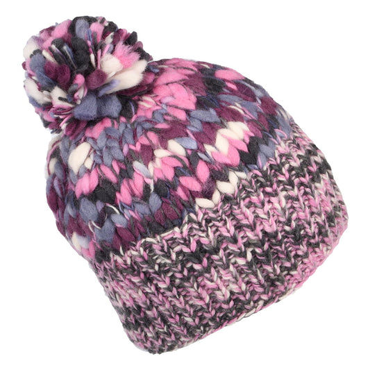 Kusan Uneven Yarn Bobble Hat - Pink-Purple