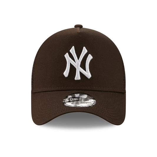 New Era 9FORTY New York Yankees A-Frame Trucker Cap - MLB League Essential - Dark Brown-White