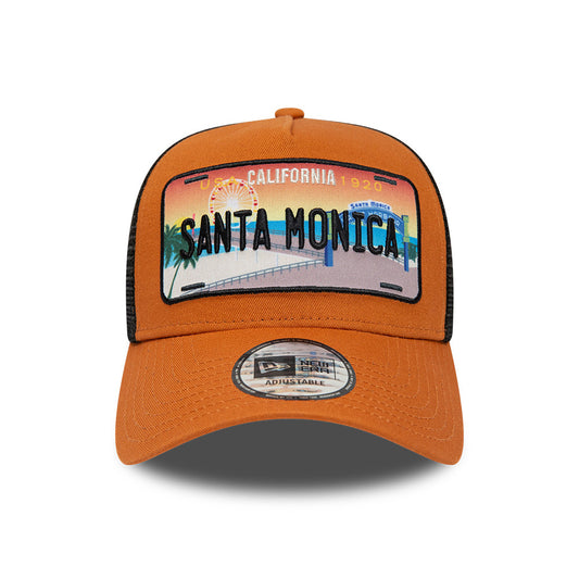 New Era 9FORTY Santa Monica A-Frame Trucker Cap - License Plate - Toffee-Black