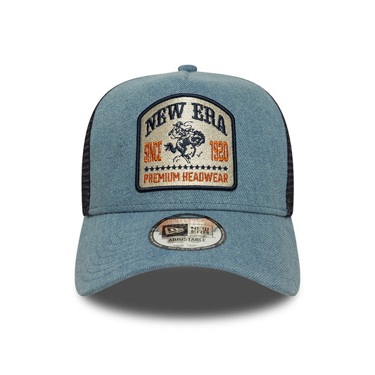 New Era A-Frame Trucker Cap - NE Denim Patch - Blue-Navy