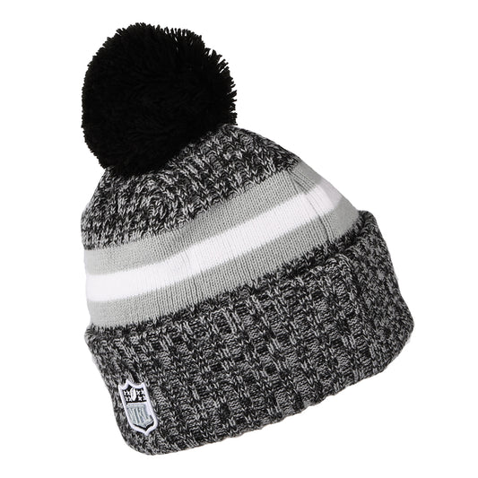 New Era Las Vegas Raiders Bobble Hat - NFL Sideline Sport Knit - Black-Grey-White