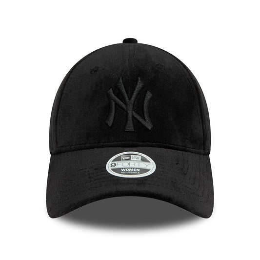 New Era Womens 9FORTY New York Yankees Baseball Cap - MLB Velour Midi - Black On Black