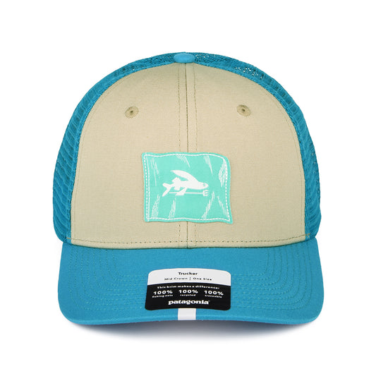 Patagonia Hats Fly The Flag Label Organic Cotton Trucker Cap - Tan-Blue