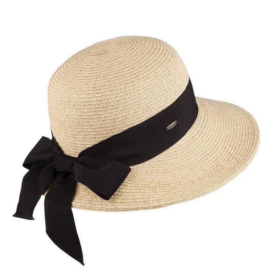 Scala Hats Straw Sun Hat With Grosgrain Bow - Natural-Black