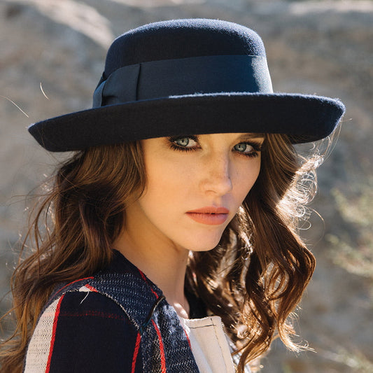Scala Hats Wool Felt Blossom Kettle Hat - Navy