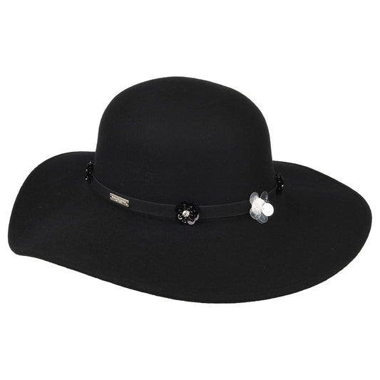 Seeberger Hats Flower Wool Felt Floppy Hat - Black